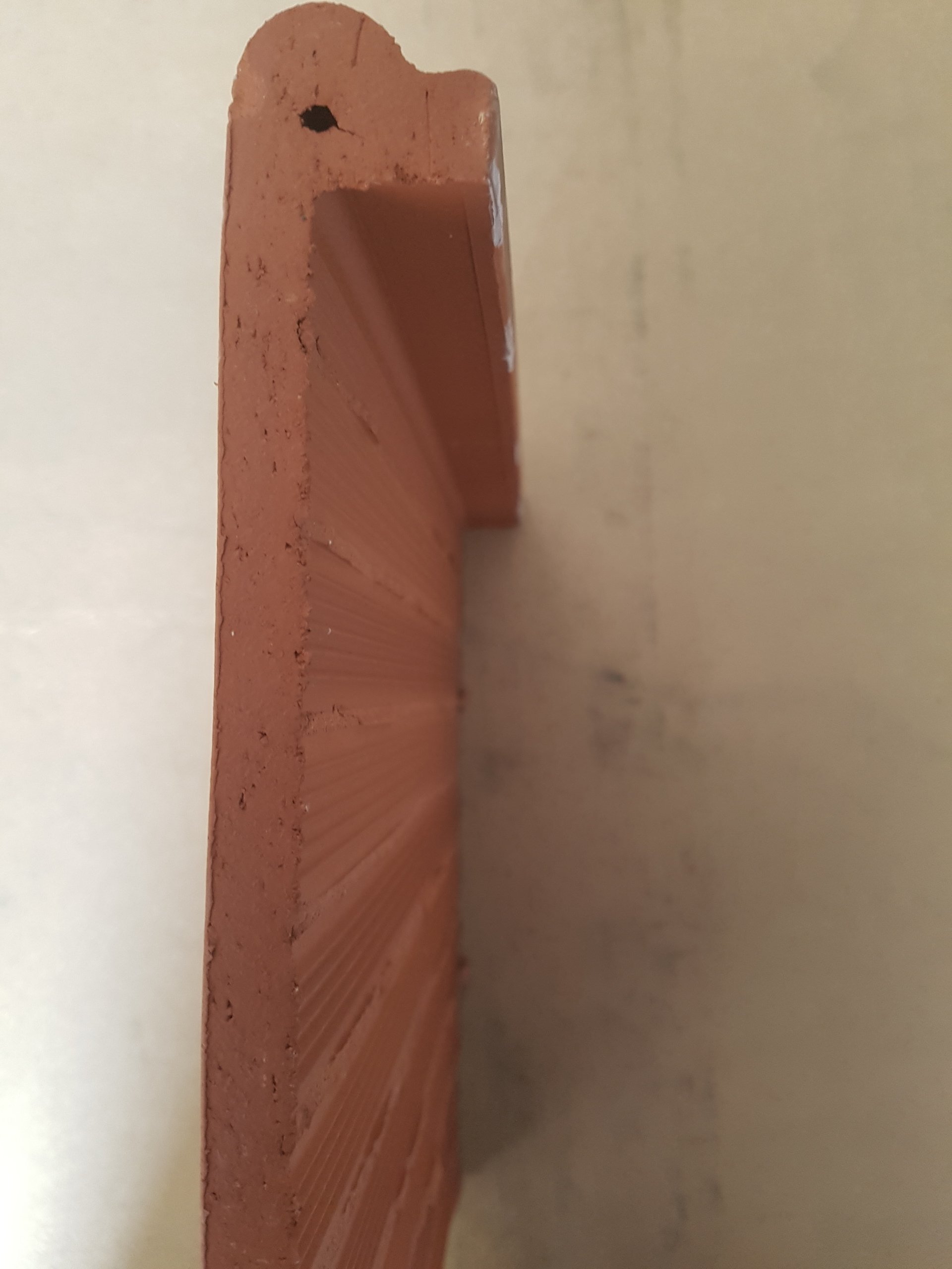 Bull Nose 25mm long x 25mm dropdown from bottom of tile to bottom of dropdown. See photos below.